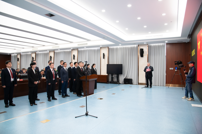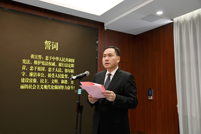 组织2025年以来新提任的处级领导干部进行宪法集体宣誓。受厅党组书记陈水树委托,厅长叶敏担任宣誓监誓人并讲话,厅党组成员、副厅长吴深生主持宣誓仪式,其他在家厅领导和厅机关全体干部、厅属单位主要负责同志现场见证。