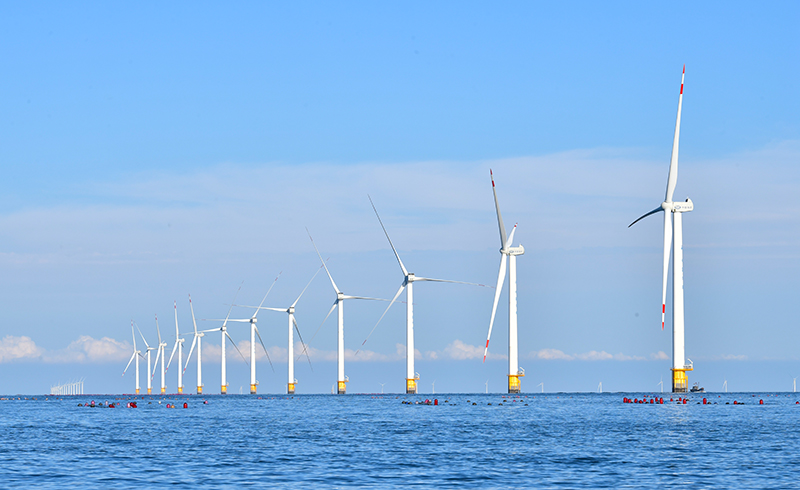 2023年9月13日拍摄的辽宁大连庄河海上风电项目。新华社记者 杨青 摄