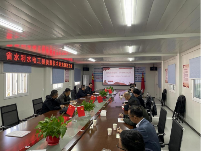 站支部书记以“强化政治意识,严守政治纪律”为题,为现场党员干部和工程参建单位管理人员讲授了一场主旨鲜明、实例生动的主题党课。他从深入学习领会“两个确立”的决定性意义入手,围绕绷紧纪律之弦、筑牢自律之堤、立起更高标准等三个方面,号召大家牢记领袖嘱托,筑牢思想防线、纯正操守修养,真正做到忠诚笃信、言出行随、知行合一,在遵规守纪上当先锋、做表率,为实现水利建设高质量发展凝聚意志力量、提供坚强保障。