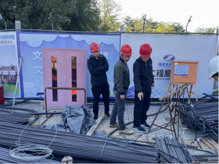 省水利水电工程质量技术站与漳州市水利水电工程质量与安全中心及龙海区水利局的青年干部职工一道,深入西溪水闸除险加固工程二期建设现场,详细了解工程建设进展,认真检查质量检测工地实验室、水闸二期围堰、地基处理及钢筋、木工加工厂等项目的安全生产和质量管控情况,并对照内业资料成果找问题、查隐患,强化整改闭合,夯实质量监督职责,全力服务工程建设大局。