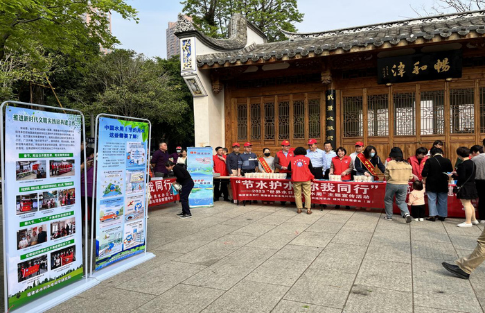 “中国水周”期间,省水科院通过播放宣传海报、标语和相关视频等方式,全面提升全院干部职工的节水护水意识。3月22日“世界水日”上午,该院联合厅政策法规与行政审批处、琼河共建社区在晋安河公园开展“节水护水 你我同行”——2023“世界水日·中国水周”主题宣传活动。活动现场悬挂节水宣传条幅、张贴主题宣传,排放《公民节水用水行为规范》展架,志愿者向市民分发《水法律法规宣传折页》《践行八不行为规范 做文明公民》宣传册及节水宣传纸杯、笔袋、笔记本、冰箱贴等宣传品,进行水法律法规以及公民“八不”行为规范的宣讲,普及节水知识、传播文明风尚,引领广大市民形成节水护水爱水的良好风尚和行为规范,以实际行动贯彻落实党的二十大精神,为高质量发展、建设美好福建贡献水利力量。